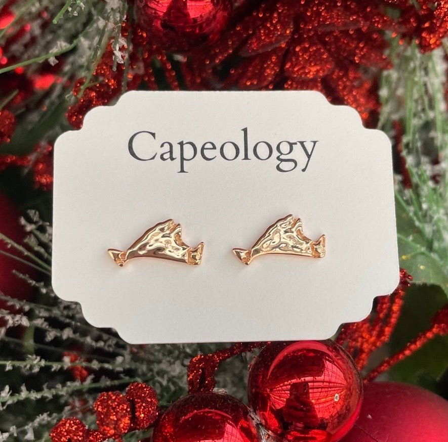 Our Capeology Martha's Vineyard earrings let you wear this special place wherever you go. They are made out of sterling silver and are available in silver, gold, or rose gold. All of our earrings are hypoallergenic. The back of the earrings is engraved with "CAPEOLOGY."