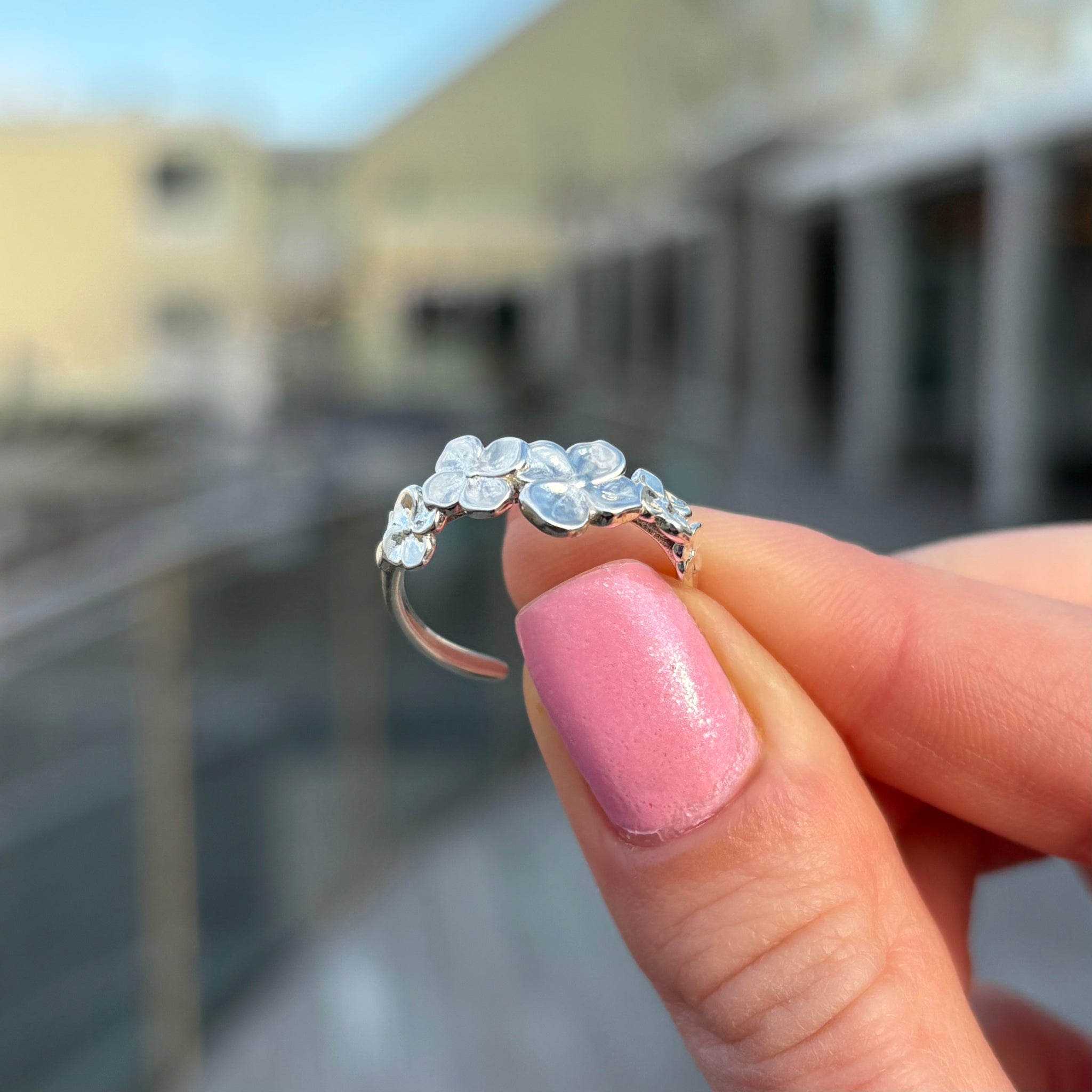 Designed for effortless wear, the adjustable band makes it easy to find your perfect fit–no sizing needed. Whether you're celebrating a special Cape memory, looking for a meaningful coastal gift, or adding the perfect floral touch to your jewelry stack, this hydrangea ring is a timeless choice.